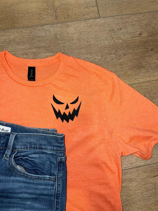 Embroidered Pumpkin Face T-Shirt – Fall Edition